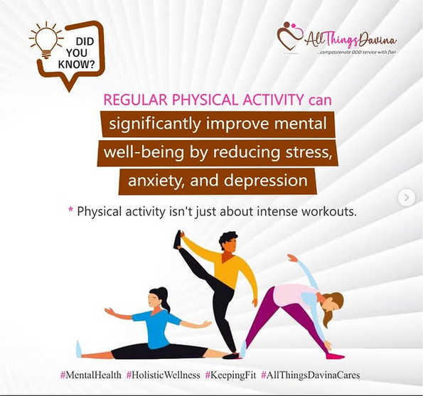 Did you know that REGULAR PHYSICAL ACTIVITY can significantly improve mental well-being by reducing stress, anxiety, and depression.